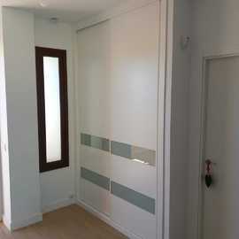 Armario corredera melamina combinado con franjas de cristal color